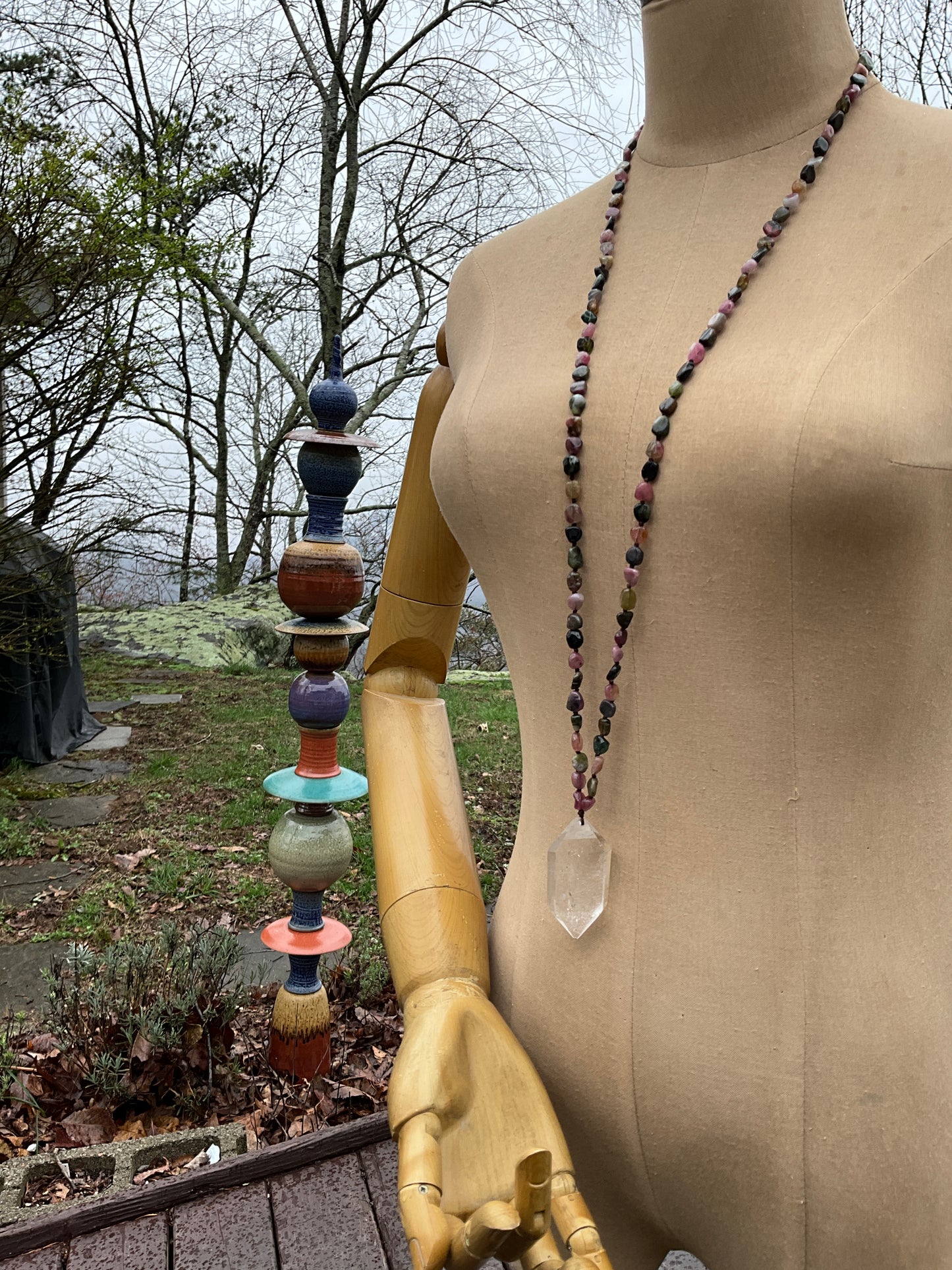 Colorful Tourmaline Double Power Crystal Necklace